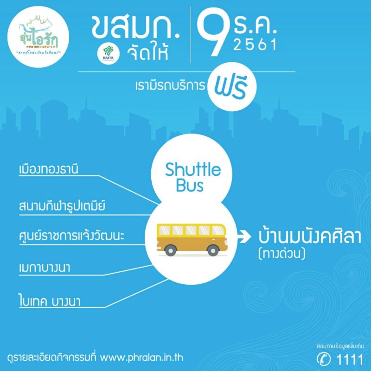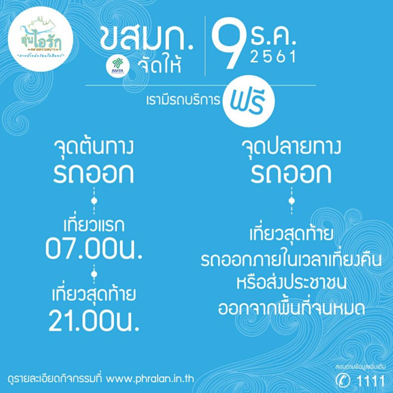 - จุดปลายทาง พื้นที่จัดงาน เที่ยวสุดท้ายรถออกภายในเวลาเที่ยงคืน หรือส่งจนกว่าคนจะหมด