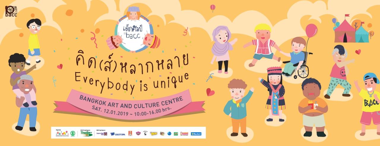 วันที่ 12 มกราคม 2562 ชวนเที่ยวงานวันเด็กแห่งชาติ “วันเด็กศิลป์ @bacc2562” ณ หอศิลปวัฒนธรรมแห่งกรุงเทพมหานคร เวลา 10.00 - 16.00 น. มีกิจกรรมสร้างสรรค์หลากหลายรูปแบบให้น้องๆ มาสนุกกัน ปีนี้นำเสนอตอน “คิด(ส์) หลาก หลาย : Everybody is Unique” ให้ศิลปะเป็นอีกหนึ่งช่องทางเรียนรู้
