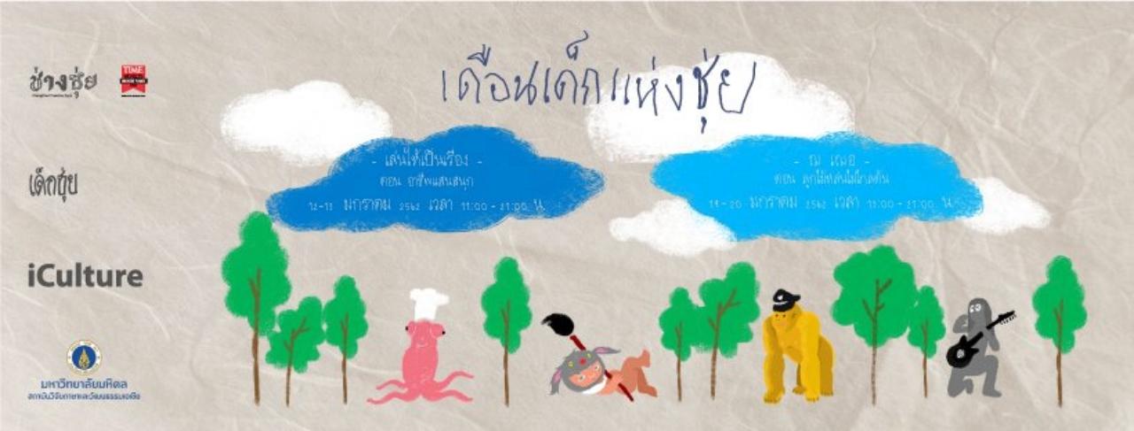 วันที่ 12-13 และ 19-20 มกราคม 2562 ชวนเด็กๆ มาร่วมฉลองวันเด็กในงาน ‘เดือนเด็กแห่งชุ่ย’ ตอน อาชีพแสนสนุก ณ โครงการช่างชุ่ย ยกพื้นที่ให้เด็กๆ ตะลุยแดนศิลปะและความคิดสร้างสรรค์ ปล่อยจินตนาการไม่รู้เบื่อบนพื้นที่ 11 ไร่ เปิดโลกการเรียนรู้สู่อาชีพที่หลากหลายให้เหล่าตัวแสบ