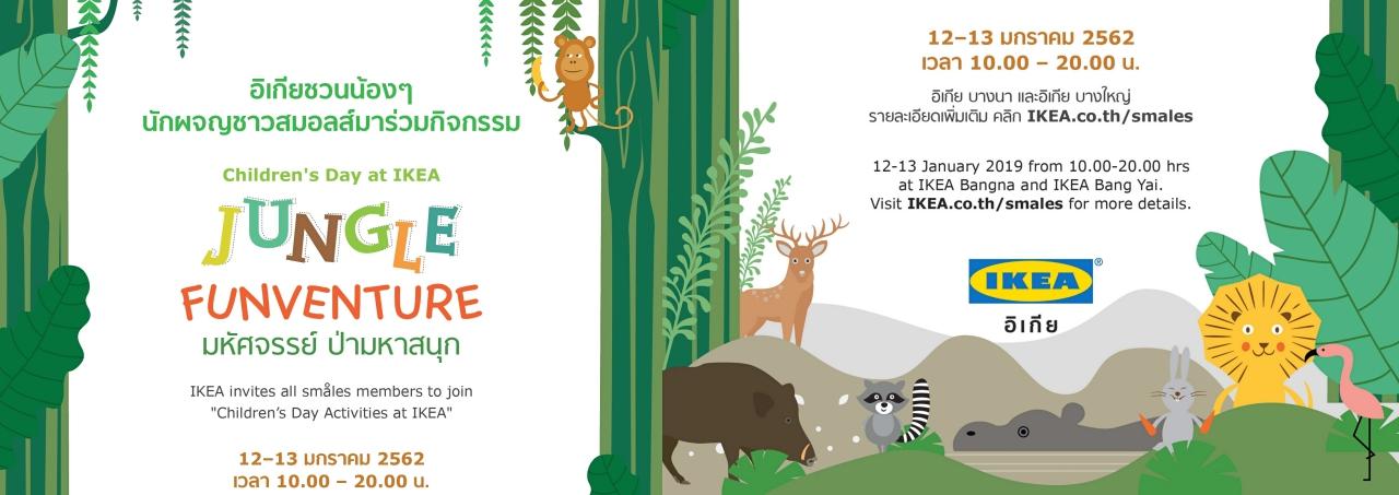 วันที่ 12-13 มกราคม 2562 ชวนเด็กๆ มาสนุกฉลองวันเด็กในงาน "Jungle Funventure มหัศจรรย์ ป่ามหาสนุก" ณ อิเกีย เมกาบางนา ณ บริเวณทางเข้า ชั้น G และอิเกีย บางใหญ่ ที่เซ็นทรัลพลาซา เวสต์เกต ณ บริเวณหน้าสมอลแลนด์ชั้น 3 เริ่มงานตั้งแต่เวลา 10.00 – 20.00 น. ภายในงานพบกับกิจกรรมสนุกๆ ร่วมผจญภัยไปในดินแดนป่าสุดมหัศจรรย์ และเมื่อลงทะเบียนเข้าร่วมงานและรับไอศกรีมวานิลาฟรี!