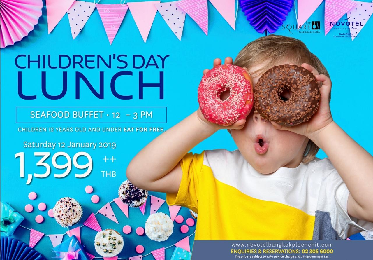 วันที่ 12 มกราคม 2562 ชวนมาฉลองวันเด็ก 2562 กับ โปรโมชั่นวันเด็กให้คุณหนูๆ ทานฟรี! ที่ห้องอาหารเดอะสแควร์ โรงแรมโนโวเทล เพลินจิต กรุงเทพฯ เป็นบุฟเฟ่ต์ซีฟู้ดนานาชาติมื้อกลางวัน มีเมนูอร่อยๆ เพียบ เช่น ปูม้า, กุ้งแม่น้ำ, หอยนิวซีแลนด์ รวมถึงโซนอาหารญี่ปุ่น อินเดีย ยุโรปหรือไทย เป็นต้น