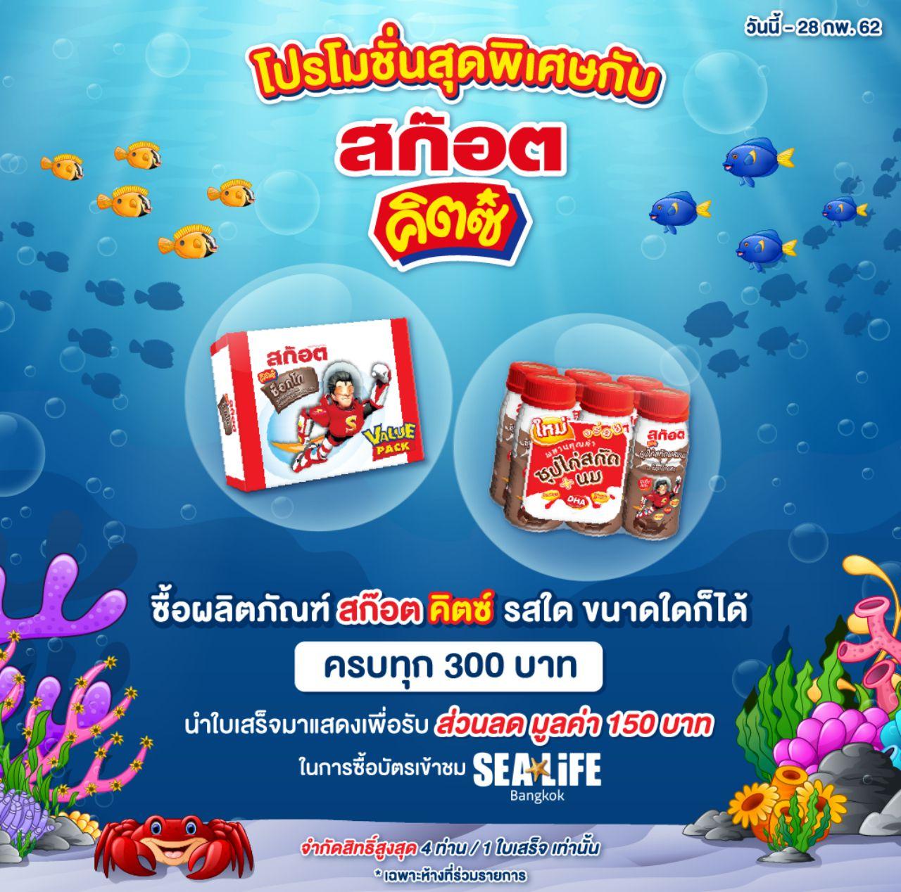 สก๊อต คิตซ์ จัดโปรโมชั่นสุดพิเศษ!!! ชวนน้องๆ หนูๆ มาท่องโลกใต้ท้องทะเลสุดหรรษา เพียงซื้อผลิตภัณฑ์ สก๊อต คิตซ์ รสใด ขนาดใดก็ได้ ครบทุก ๆ 300 บาท สามารถนำใบเสร็จแลกรับส่วนลด มูลค่า 150 บาท ในการซื้อบัตรเข้าชม Sea Life Bangkok Ocean World (ซีไลฟ์ แบงคอก โอเชี่ยน เวิลด์) ชั้น B1-2 สยามพารากอน (ขอจำกัดสิทธิ์สูงสุด 4 ท่าน/ 1 ใบเสร็จ) ร่วมช้อปได้ตั้งแต่วันที่ 12 – 28 กุมภาพันธ์ 2562 ที่ 7-Eleven , Gourmet Market , Home Freshmart , Lotus , Tops , Big C , Makro, Max Value , Foodland , Lawson 108 , Golden Place , ร้านค้าสวัสดิการ ทหารอากาศ ดอนเมือง, Familymart , CJ Express และ Scotch Shop Online ติดตามรายละเอียดเพิ่มเติมได้ที่ www.scotch.co.th