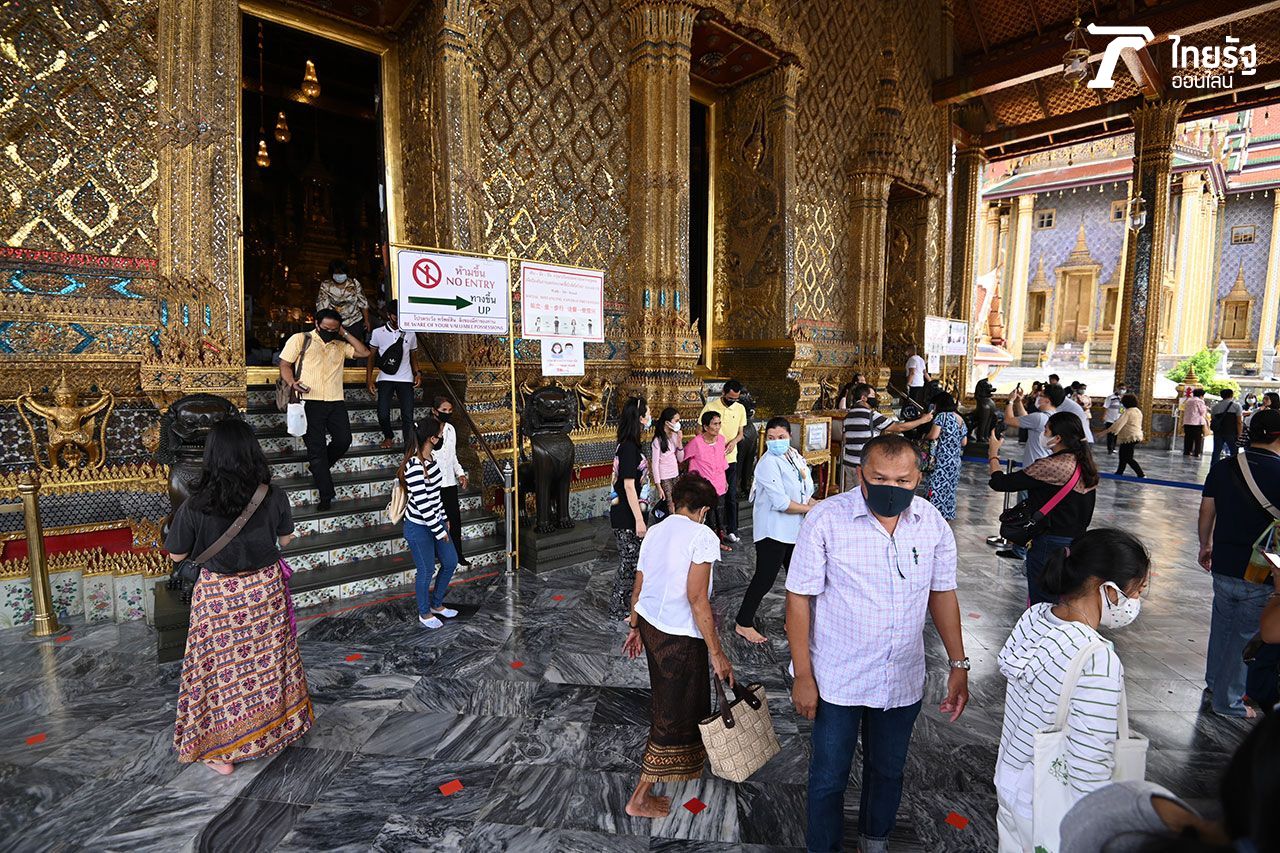 นักท่องเที่ยว เริ่มเข้าชมพระบรมมหาราชวังและวัดพระแก้ว พร้อมปฏิบัติตามมาตรการป้องกันโรคโควิด-19 อย่างเต็มที่