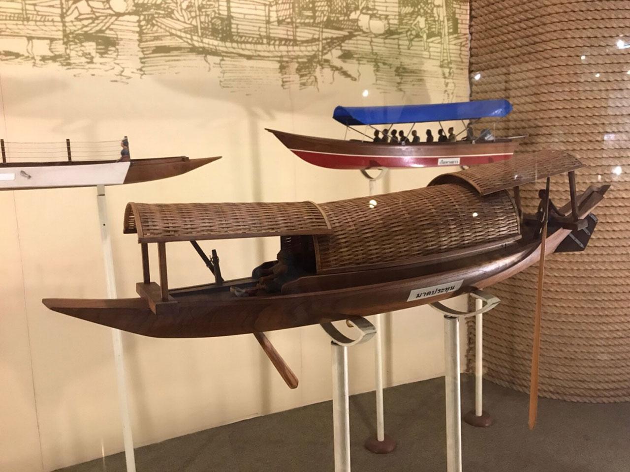 นอกจากนี้ ยังมี “ห้องแสดงเรือและชีวิตชาวเรือ” จัดแสดงโมเดลเรือจำลองประเภทต่างๆ ในบ้านเรา ทั้งเรือขุดและเรือต่อ เรือพระราชพิธี เรือรบสมัยใหม่ เรือสำเภา และเรือพื้นบ้านที่บางลำกลายเป็นตำนาน หาดูได้ยาก แถมยังมีเรือชื่อแปลกๆ ที่ผมเชื่อว่า คนยุคนี้ไม่เคยรู้จักแน่นอน เช่น เรือผีหลอก, เรือพายม้า, เรือหมู ,เรือแม่ปะ, เรือหางแมงป่อง, เรือสำเภา ฯลฯ และยังมีซากเรือโบราณอายุประมาณ 200 ปีที่ขุดขึ้นมาจากไม้ตะเคียนต้นเดียว แต่ว่ายังขุดไม่เสร็จ ดีว่าอยู่ในพิพิธภัณฑ์แล้วนะครับ ถ้าไปตั้งที่วัดไหนสักแห่ง ผมว่าป่านนี้คนคงไปขูดเลขจนอาจจะมองไม่เห็นลายไม้แล้วก็ได้