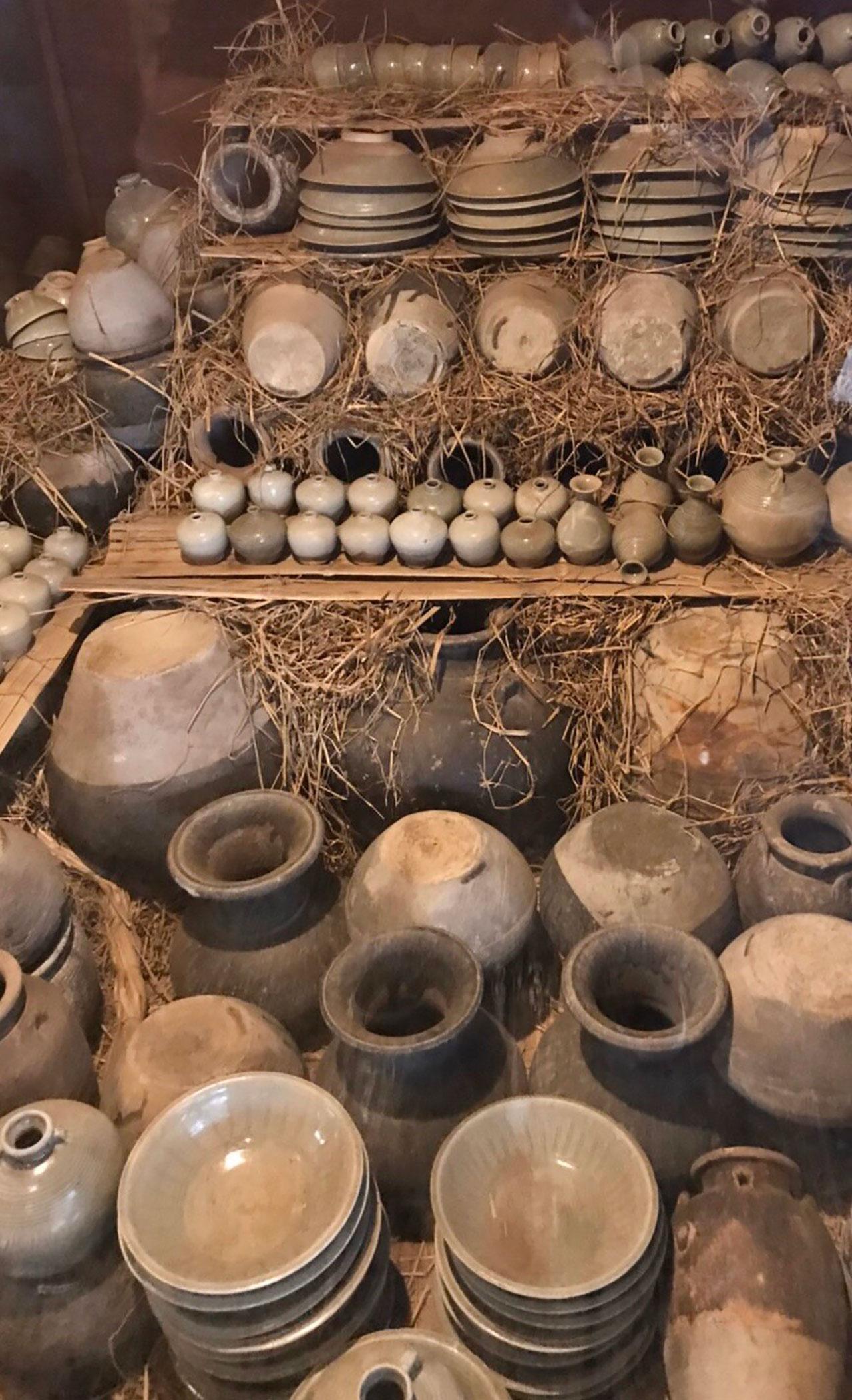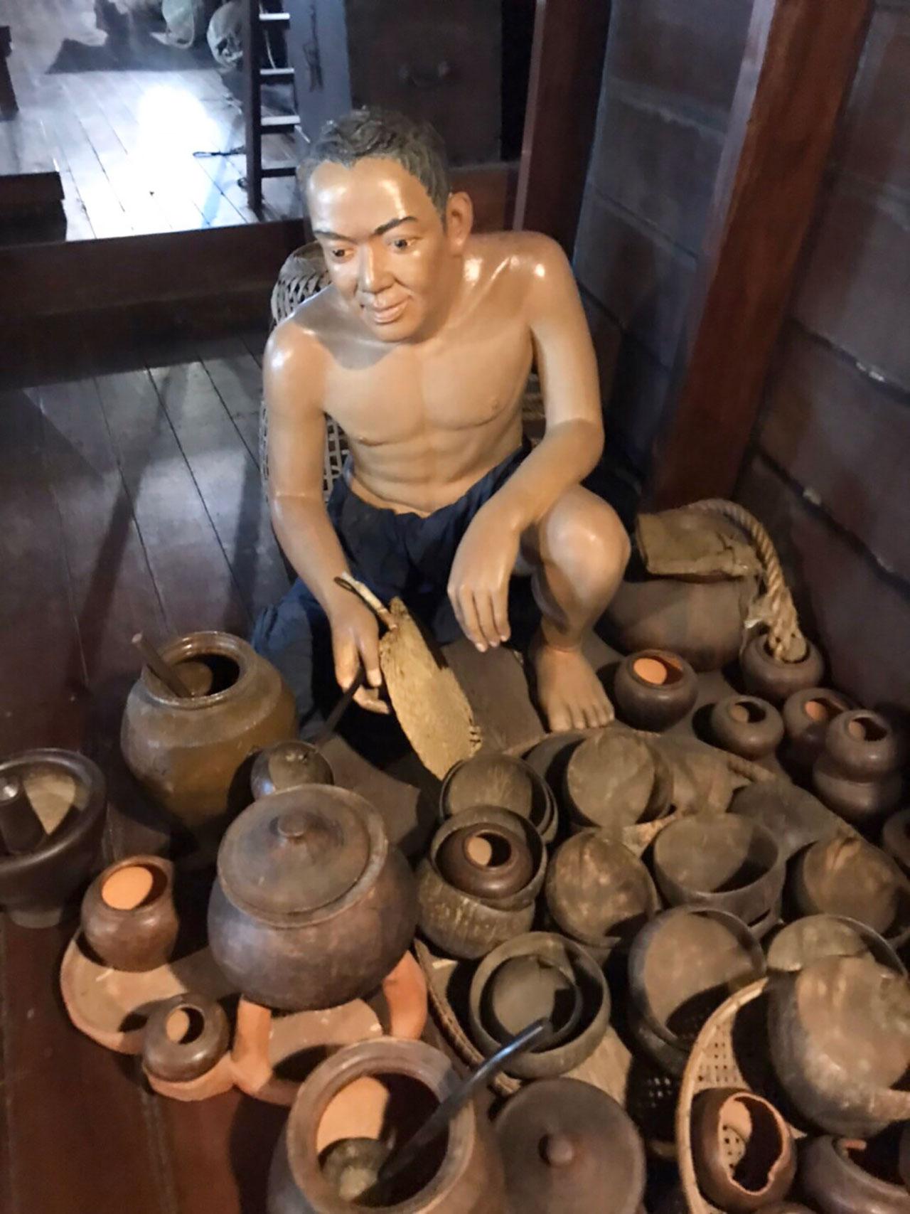 ด้านหนึ่งของเรือ มีส่วนที่กั้นเป็นห้องสำหรับเก็บเครื่องถ้วย ชาม ราม ไห ภัณฑารักษ์ของพิพิธภัณฑ์ อธิบายให้ผมฟังว่า เครื่องโบราณวัตถุเหล่านี้ มีทั้ง ไหสี่หูเคลือบน้ำตาลดินของสิงห์บุรี เครื่องเคลือบสังคโลกเขียวไข่กา ผ้าไหมแพรพรรณที่นำมาจากจีน เครื่องเทศ ไม้ฝาง และทองแดงที่ซื้อมาเป็นทั้งวัสดุใช้ทำประโยชน์และเป็นอับเฉาเรือไปในตัว
