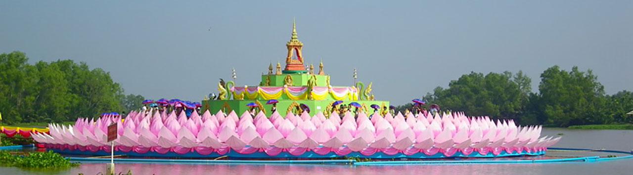 จากพญานาค ถัดออกไปนิดหนึ่ง มองเห็นสะพานทางเดินยาวๆ ออกไปในแม่น้ำ เป็นจุดที่ให้เดินไปสักการะพระบรมสารีริกธาตุ ซึ่งประดิษฐานอยู่ในดอกบัวยักษ์ สีชมพูสวยสด เป็นอีกหนึ่งไฮไลต์ของที่วัดนี้ครับ