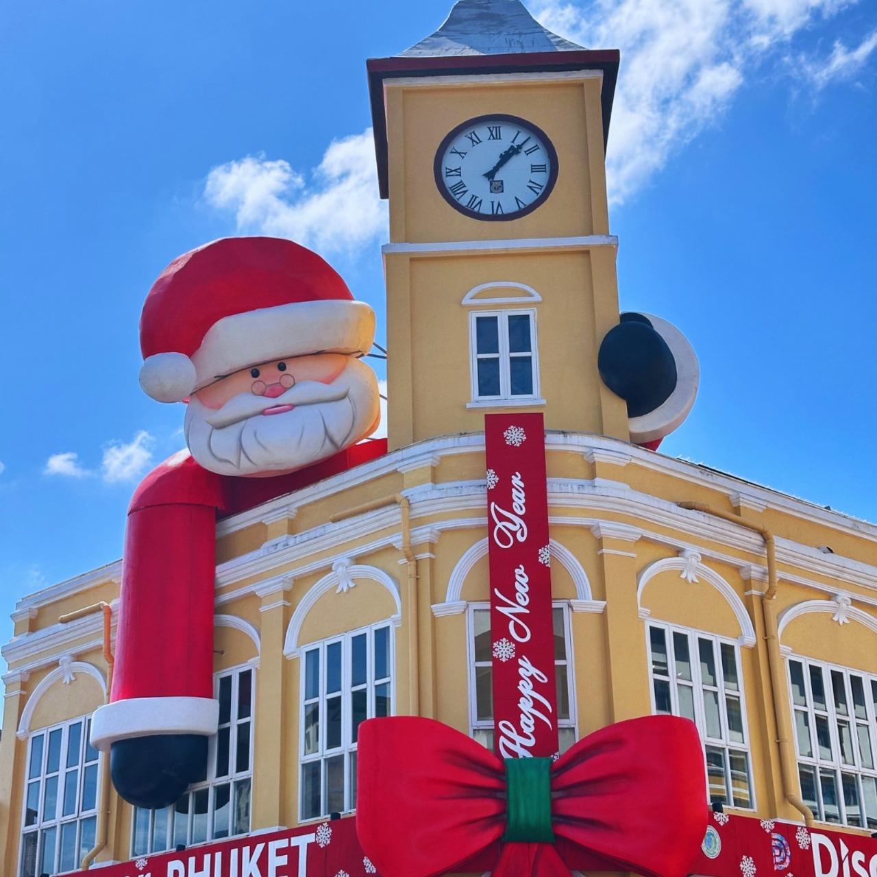 ชวนท่องเที่ยว เช็กอินถ่ายรูปจุดแลนด์มาร์กใหม่ ที่กำลังเป็นกระแสไวรัลอยู่ ณ ปัจจุบันในจังหวัดภูเก็ต กับการตกแต่งประติมากรรมซานต้ายักษ์ บนธนาคารชาร์เตอร์ ที่สี่แยกเมืองเก่าภูเก็ตรับคริสต์มาสนี้