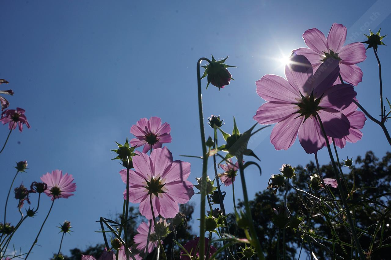 หลังจากฟังความรู้คร่าวๆ แล้ว ก็ได้เวลาเดินทางไปเที่ยวชมภายในศูนย์ฯ ห้วยฮ่องไคร้ จุดแรกที่โดดเด่นสะดุดตาเลยก็คือ ทุ่งดอกคอสมอส คละสีกระจายตัวอยู่เต็มทุ่ง แถมยังมีดอกไม้ป่าอีกหลากหลายชนิดที่นำมาปลูกประดับไล่ระดับสีอย่างสวยงาม ซึ่งมีนักท่องเที่ยวมาแวะถ่ายรูปมุมนี้อยู่ไม่ขาดสาย