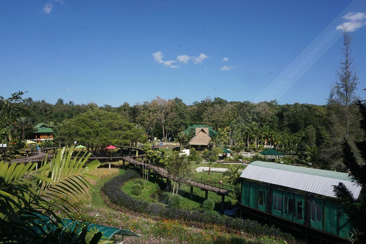 ส่วนบริเวณรอบนอก เป็นที่ตั้งของแปลงสาธิตการปลูกพืชเศรษฐกิจชนิดต่างๆ มีทั้งแปลงข้าว หญ้าแฝก สวนต้นฟักข้าว แปลงพืชสมุนไพร ผักสวนครัว โรงเรือนจัดแสดงผีเสื้อพันธุ์ต่างๆ บ่อเลี้ยงปลาทับทิม บ่อเพาะพันธุ์กบ เป็นต้น