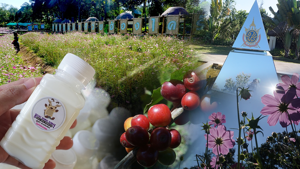 จากนั้นเราเดินทางต่อไปยังฟาร์มแพะและฟาร์มวัวนม ที่ตั้งอยู่อีกฟากหนึ่งของศูนย์ฯ ห้วยฮ่องไคร้ ที่นี่มีกิจกรรมให้นักท่องเที่ยวได้ทดลองรีดนมวัว ให้อาหารแพะ และยังมีจุดจำหน่ายผลิตภัณฑ์น่าสนใจ เช่น นมวัวสด นมแพะสด ไอศกรีมนมแพะ ไอศกรีมนมวัว ชีสนมแพะ โยเกิร์ตนมแพะ สบู่นมแพะ เป็นต้น