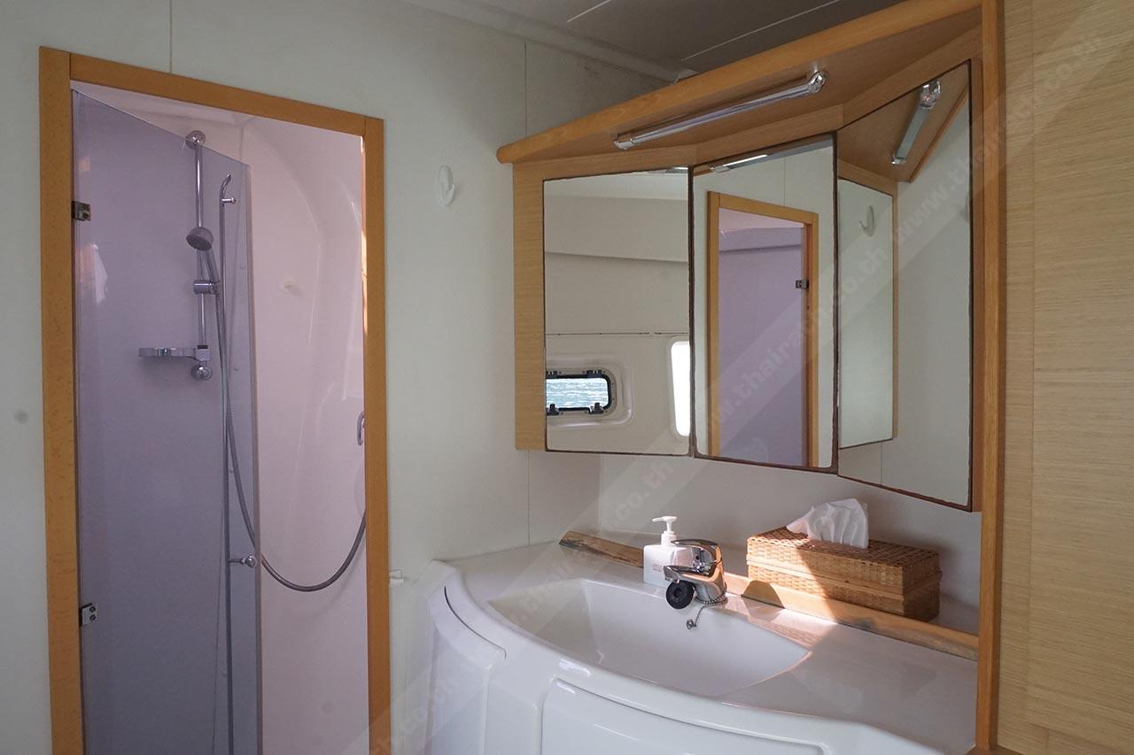 ความโดดเด่นอันเลอค่าของเจ้าบลูลากูนลำนี้ก็คือ นางมีสเปซภายในที่กว้างขวาง สามารถพักผ่อนได้สะดวกสบาย เดินได้รอบเรือ มีห้องนอน 3 ห้อง (แต่วันที่เราไปเที่ยว แวะไปดูได้ 2 ห้อง ชมได้ในคลิป) รวมห้องน้ำอีก 3 ห้อง มีมุมห้องครัว ห้องนั่งเล่น และสิ่งอำนวยความสะดวกครบครัน