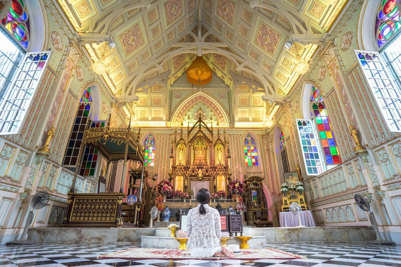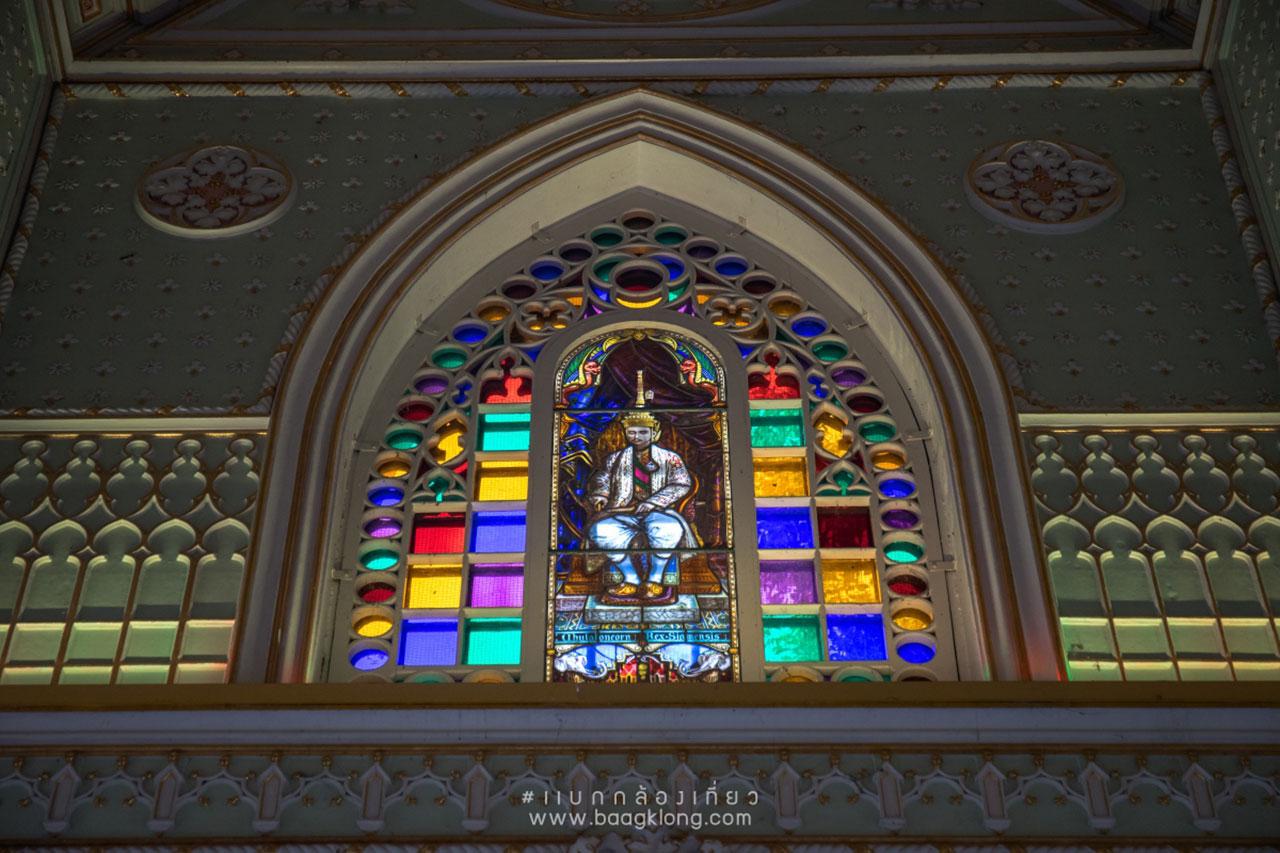 นอกจากนี้ บริเวณฐานชุกชีก็มีลักษณะเหมือนที่ตั้งไม้กางเขนแบบโบสถ์ และฝาผนังโบสถ์ด้านหน้าของพระประธานนั้น เป็นพระบรมฉายาลักษณ์ของรัชกาลที่ 5 ที่ประดับด้วยกระจกสี สวยงามมากจริงๆ