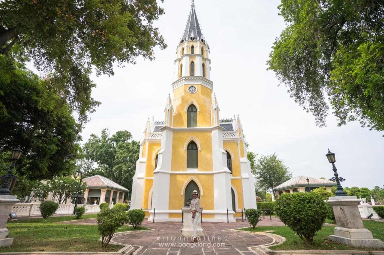 ตลาดจะเปิดเฉพาะวันพฤหัสบดี - วันอาทิตย์ และวันหยุดนักขัตฤกษ์ เวลา 10.00 - 16.00 เท่านั้น ปิดท้ายทริปของเราวันนี้กันที่ วัดนิเวศธรรมประวัติราชวรวิหาร ก่อนจะถึงวัดก็มีสิ่งที่น่าตื่นเต้นตรงที่ต้องนั่งกระเช้าลอยฟ้าข้ามแม่น้ำไป วัดนี้เป็นพระอารามหลวงชั้นเอก พระบาทสมเด็จพระจุลจอมเกล้าเจ้าอยู่หัวโปรดฯ ให้สร้างขึ้นเพื่อทรงใช้เป็นสถานที่สำหรับบำเพ็ญพระราชกุศล เมื่อเสด็จฯ แปรพระราชฐานมาประทับที่พระราชวังบางปะอิน ซึ่งพระอุโบสถของวัดนั้นสร้างเลียนแบบโบสถ์คริสต์ โดยภายในประดิษฐาน "พระพุทธนฤมลธรรโมภาส" เป็นพระประธาน โดยพระวรวงศ์เธอ พระองค์เจ้าประดิษฐวรการทรงออกแบบ โดยลักษณะที่ผสมผสานศิลปะแบบประเพณีนิยม และศิลปะแบบตะวันตกเข้าด้วยกัน ซึ่งมีพุทธลักษณะคล้ายสามัญชน