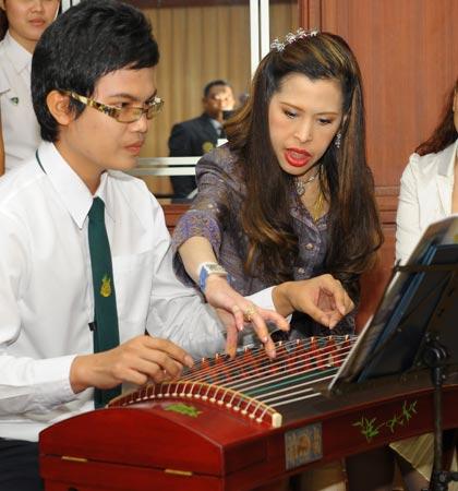 จากพระดำริในสมเด็จพระเจ้าลูกเธอ เจ้าฟ้าจุฬาภรณวลัยลักษณ์ อัครราชกุมารี ที่ให้มหาวิทยาลัยเกษตรศาสตร์เปิดสอนดนตรีเครื่องสายตะวันออก โดยเน้นเครื่อง สายจีน เช่น กู่เจิง เอ้อหู และทรงพระกรุณาเสด็จมาสอนดนตรีเครื่องสายตะวันออกแก่นิสิตภาควิชาดนตรี คณะมนุษยศาสตร์ มหาวิทยาลัยเกษตรศาสตร์ ด้วยพระองค์ เอง เป็นที่แรกในเดือนกรกฎาคม ทั้งทรงบรรยายและทรงสอนปฏิบัติจริง โดยเมื่อวันที่ 28 ก.ค. ที่ผ่านมา ซึ่งเป็นการสอนภาคปฏิบัติเป็นครั้งสุดท้าย ทรงใช้เวลาในการสอน 2 ชั่วโมง โดยทรงเริ่มต้นสอนวิธีการพันเล็บกู่เจิงกับนิ้วของนิสิต, สอนเทคนิคการเขย่าสาย, เทคนิคการกรอ, เทคนิคการเอื้อนเสียง พร้อมกันนี้ยังทรงให้นิสิตเล่นเพลงเต้ยโขง และทรงสอนให้เล่นเพลงมัวลี่ฮัว หรือดอกมะลิ ที่เรียบเรียงโดยอาจารย์หลี่ หยาง อีกด้วย