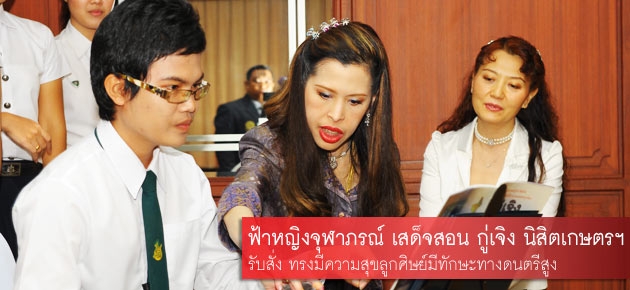 เมื่อทูลถามถึงการเตรียมพระองค์ ในการสอน เจ้าฟ้าหญิงจุฬาภรณฯ รับสั่งว่า ทรงต้องเตรียมใจคล้ายกับว่าต้องมองย้อนไปดูว่า สิ่งที่พระองค์จะทรงสอนนั้นความจริงเป็นเรื่องยากมาก แต่สำหรับพระองค์ ในตอนนี้ง่ายแล้ว เพราะทรงเล่นมา 10 ปีแล้ว เลยไม่รู้ว่าเป็นสิ่งที่ยาก จึงต้องทรงทำความคิดใหม่ และทรงแปลกใจเป็นอันมากที่นิสิตมหาวิทยาลัยเกษตรศาสตร์เรียนได้เร็วมาก สอนอะไรมักทำได้เลย หรือถ้ายังทำไม่ได้ อีกหนึ่งอาทิตย์ เขาไปซ้อม ก็จะทำได้ ทรงได้เห็นลูกศิษย์ นอกจากมีทักษะทางดนตรีสูงแล้ว ยังมีความขยันอีกด้วย พร้อมกันนี้ยังรับสั่งถึงลูกศิษย์อีกว่า เวลาที่ทรงสอนจะทรงให้ กำลังใจไม่ให้ลูกศิษย์เครียด บางครั้งทรงจับมือลูกศิษย์ เพื่อสอนการเขย่า หลายคนมือเย็นมาก ต้องแซวลูกศิษย์ บ้าง ไม่ให้เขาเครียด และการได้เสด็จมาสอนนี้ทำให้ พระองค์มีความสุขและประทับใจที่ลูกศิษย์ทุกคนเป็นนักเรียนที่ดี มีความสนใจและสามารถทำได้ทุกอย่างใน สิ่งที่ทรงสอนไป