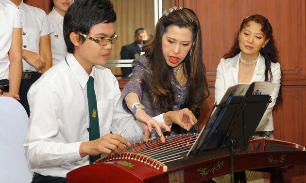 จากพระดำริในสมเด็จพระเจ้าลูกเธอ เจ้าฟ้าจุฬาภรณวลัยลักษณ์ อัครราชกุมารี ที่ให้มหาวิทยาลัยเกษตรศาสตร์เปิดสอนดนตรีเครื่องสายตะวันออก โดยเน้นเครื่อง สายจีน เช่น กู่เจิง เอ้อหู และทรงพระกรุณาเสด็จมาสอนดนตรีเครื่องสายตะวันออกแก่นิสิตภาควิชาดนตรี คณะมนุษยศาสตร์ มหาวิทยาลัยเกษตรศาสตร์ ด้วยพระองค์ เอง เป็นที่แรกในเดือนกรกฎาคม ทั้งทรงบรรยายและทรงสอนปฏิบัติจริง โดยเมื่อวันที่ 28 ก.ค. ที่ผ่านมา ซึ่งเป็นการสอนภาคปฏิบัติเป็นครั้งสุดท้าย ทรงใช้เวลาในการสอน 2 ชั่วโมง โดยทรงเริ่มต้นสอนวิธีการพันเล็บกู่เจิงกับนิ้วของนิสิต, สอนเทคนิคการเขย่าสาย, เทคนิคการกรอ, เทคนิคการเอื้อนเสียง พร้อมกันนี้ยังทรงให้นิสิตเล่นเพลงเต้ยโขง และทรงสอนให้เล่นเพลงมัวลี่ฮัว หรือดอกมะลิ ที่เรียบเรียงโดยอาจารย์หลี่ หยาง อีกด้วย