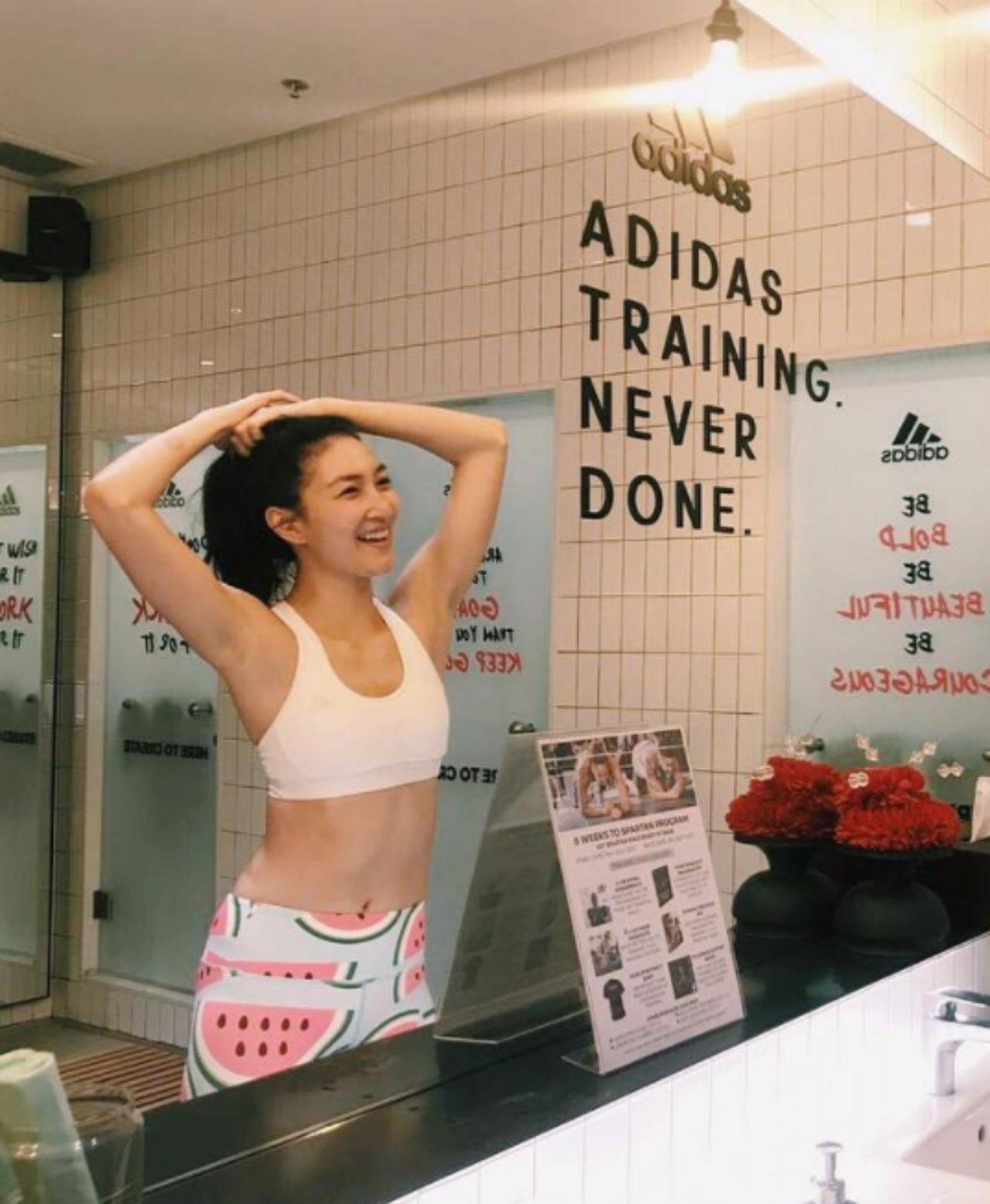เดี๋ยวๆ คุณผู้ชม ไม่ต้องไปโฟกัสที่ชุดกีฬา แต่ที่น่าจับตามองมากกว่านั้นคือ กล้ามท้องขาวเนียน ของคนดังที่สวยและเฟิร์มจนอยากจะลุกจากที่นั่ง หรือวางช้อนส้อมจากอาหารมื้อนี้ แล้วรีบไปเข้ายิมทันที