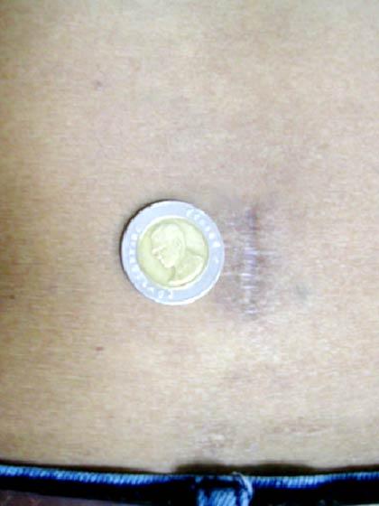 รูปแสดงขนาดแผลผ่าตัดของผู้ป่วยหมอนรองกระดูกทับเส้นประสาทที่เอว