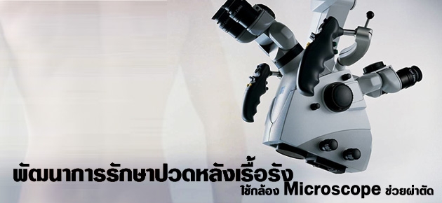 นอกจากการพัฒนาในด้านการวินิจฉัยแล้ว การพัฒนาด้านการรักษาก็ควบคู่กันไป เมื่อเราทราบสาเหตุที่แท้จริงของปัญหา ทราบตำแหน่งของปัญหา ทำให้เราสามารถหาตำแหน่งเป้าหมาย ที่จะแก้ไขโดยไปรบกวนอวัยวะข้างเคียงที่ไม่จำเป็นน้อยที่สุด จึงมีการพัฒนาการผ่าตัดที่ใช้กล้องเข้ามาช่วย โดยเฉพาะโรคที่พบได้บ่อยที่สุดในผู้ป่วยที่ปวดหลังเรื้อรัง คือโรคหมอนรองกระดูกทับเส้นประสาท โรคช่องโพรงไขสันหลังตีบแคบจากหินปูนกดทับเส้นประสาท การผ่าตัดโดยใช้กล้องเข้ามาช่วย มีทั้งแบบที่สอดกล้องเข้าไปในร่างกาย และการใช้กล้องช่วยผ่าตัดอยู่ด้านนอก ซึ่งแพทย์จะเลือกวิธีที่เหมาะสมในผู้ป่วยแต่ละราย