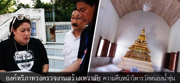 จากนั้น "องค์หริภา" ได้เสด็จไปทรงตรวจความคืบหน้าภายในวิหารวัดหนองน้ำขุ่น โดยมีพระประสงค์ให้ปลูกต้นไม้เพิ่มเติม โดยเฉพาะด้านหลังวิหาร เพื่อป้องกันแสงแดดที่จะส่องเข้ามาทำลายงานจิตรกรรมฝาผนังภายในวิหาร และเพิ่มความร่มเย็นให้กับวัด สำหรับความคืบหน้าของงานปรับปรุงฝ้าเพดานภายในวิหาร ได้ดำเนินการเสร็จเรียบร้อยแล้ว ส่วนผนังได้ปรับปรุงพื้นผิวให้เรียบ เพื่อให้เหมาะกับงานจิตรกรรมฝาผนัง และพื้นวิหารก็ใช้ไม้แดงปูทับ ให้ล้อตามแนวเพดานด้วยวิธีเข้าลิ้น ขอบและธรณีประตู รวมถึงบันไดทางเข้าทุกด้าน จะใช้ไม้ชิ้นใหญ่ปูปิดไว้ และอาจมีการแกะสลักเพิ่มเติมเพื่อความงดงาม.