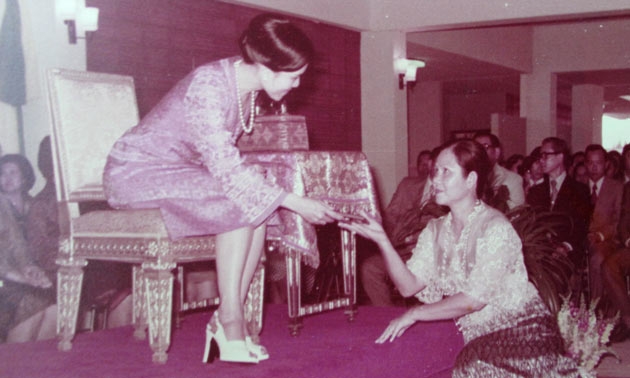 "ปีแรกๆทดลองไปโตเกียวก่อน ไปปักๆๆ เย็บๆๆ เขาก็ให้ใบรับรองมา แล้วเราก็ดูของเขาบ้าง พอดูก็รู้ว่าเรายังสู้เขาไม่ได้ คือไม่เคยลืมตัวนะ มีความคิดอยู่เสมอว่า เรายังทำอะไรไม่ได้ดีเท่าเขาหรอก กลับมาคิดดูแล้วก็เลยไปดูงานที่ฝรั่งเศสอีก ดิฉันเองก็ไม่รู้ภาษาฝรั่งเศส แต่ลูกสาวของเพื่อนสามีเขาอยู่ฝรั่งเศสมา 3 ปีแล้ว ก็มาเป็นล่ามให้มาสอนดิฉัน ไปถึงฝรั่งเศสก็ท่องภาษาฝรั่งเศส ดิฉันอ่านภาษาฝรั่งเศสไม่ได้นะ เรียนพูดเท่านั้น