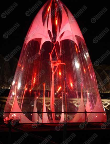 ส่วนวันเสาร์ที่ 28 และอาทิตย์ที่ 29 ส.ค.นี้ ถึงคิวอวดความอลังการงานสร้างของโชว์ชั้นเยี่ยมจากประเทศอิตาลี ในชื่อชุด "อะควา สปิริต" โดยคณะสตูดิโอ เฟสติ รับประกันว่าจะตื่นตะลึงกับลีลาอ่อนช้อยของนักบัลเลต์ ที่ดำดิ่งลงไปร่ายรำในแก้วใสครึ่งวงกลมขนาดใหญ่เบิ้ม ลอยสูงจากพื้นดิน ตามติดมาด้วยการแสดงชุด "ไลท์ ออฟ จอย" ของ 4 นักแสดงสาว ที่สวมกระโปรงสุ่ม ขนาดยักษ์สูงกว่า 3.2 เมตร ประดับด้วยแสงไฟสว่างไสว พร้อมเคลื่อนไปกับขบวนพาเหรด เพื่อมอบความสุขสันต์ในยามค่ำคืนสำคัญ และปิดท้ายด้วยการแสดงสร้างสรรค์จากฝรั่งเศส "เอิร์ธ ซาลูท" โดยคณะเซิก กงเฟล์ ชวนให้อึ้งทึ่งไปกับความมหัศจรรย์ของแมงป่องยักษ์ ที่ค่อยๆพองตัวจนมีขนาดมหึมาเท่าตึกสูง 4 ชั้น