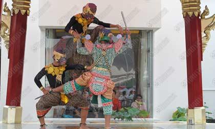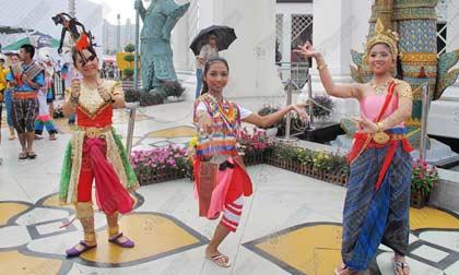 สำหรับ การแสดงที่ชาวคณะแฟนต้ายุวทูตฯได้นำไปแสดงให้ชาวจีนที่ยืนรอคิวได้ชมถึง 2 รอบ ในเวลา 11.00 น. และ 13.00 น. คือการแสดงชุดรำ 4 ภาค เริ่มต้นด้วยนาฏลานนา จากน้องแฟนต้าภาคเหนือ ที่อุ่นเครื่องด้วยการแสดงท่ารำอันสวยงามและมีสีสันในการแสดง ตามด้วยการแสดงในจังหวะที่สนุกสนาน คือการรำเซิ้งอีสาน จากแฟนต้ายุวทูตภาคตะวันออก เฉียงเหนือ และต่ออารมณ์คึกคักท่ามกลางบรรยากาศที่ร้อนระอุ ด้วยการแสดงนารีทักษิณ จากแฟนต้ายุวทูตภาคใต้ ซึ่งได้ผสมผสานท่ารำจากการเชิดหนัง ตะลุง และการรำมโนราห์ที่สวยงาม ปิดท้ายการรำ 4 ภาคด้วยระบำหุ่นคน ของแฟนต้ายุวทูตกรุงเทพฯ ที่ผสมผสานท่ารำที่สวยงามกับการเชิดหุ่นเข้ากับจังหวะเพลงไทยที่ไพเราะ ส่วนไฮไลต์ของการแสดง ได้แก่ การแสดงโขน ตอนยกรบ จากหนุ่ม B-Boy ซึ่งเป็นแฟนต้ายุวทูตภาคตะวันออก และการรวมตัวของคณะแฟนต้ายุวทูตทั้งหมดที่ร่วมแสดงในชุดขบวนกลองยาว การแสดงทั้งหมดสร้างความประทับใจให้กับผู้ชมที่ปรบมือชื่นชมอย่างกึกก้อง