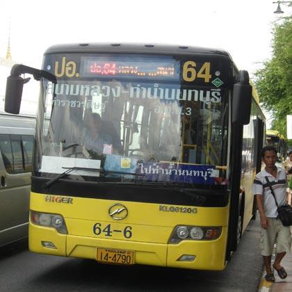 " รถเมล์ที่นั่งบ่อยที่สุด ส่วนใหญ่ก็จะนั่งเป็นรถปรับอากาศสีเหลืองค่ะ เพราะมันกว้าง แล้วยืนสบาย แต่เบาะนั่งแข็งมากๆ เก้าอี้ก็เล็กไม่ค่อยสะดวก หัวเข่านี่ติดกับเก้าอี้ตัวหน้าเลยค่ะ บางคันก็ไม่ค่อยสะอาดด้วย บางทียังคิดเลยค่ะว่า อยากให้เอารถเมล์รุ่นเก่าๆ มาใช้ดีกว่าไหม เพราะนั่งสบายกว่าเยอะ รถสีเหลืองแบบนี้มันดูทันสมัยก็จริง แต่ถ้านั่งไปนานๆ มันจะทำให้เสียสุขภาพมากกว่า คิดว่าแบบนี้ไม่น่าจะคุ้มเท่าไหร่หรอกค่ะ แต่ก็ต้องนั่ง"