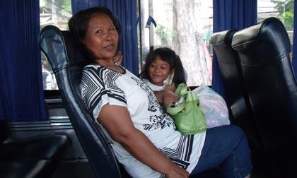 ต่อมาที่คู่แม่ลูก ซึ่งนั่งรถร่วมปรับอากาศสีน้ำเงิน และรถพ่วงปรับอากาศ NGV สีขาว-เขียว เป็นประจำ บอกว่า ใช้บริการรถสาธารณะทุกวัน ทั้งที่เป็นรถเอกชน และของขสมก.