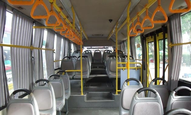 เก้าอี้ในรถเมล์ปรับอากาศสีเหลือง