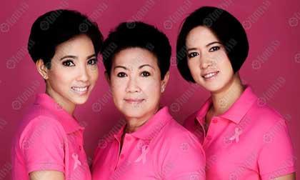 ด้าน ลักขณา นะวิโรจน์ ผู้บริหารเดอะ มอลล์ กรุ๊ป ชวนน้องสาว ศิริลักษณ์ ไม้ไทย มาร่วมเป็นแอมบาสเดอร์ในปีนี้ด้วย บอกว่า ปีนี้มีโอกาสเข้าร่วมโครงการหลังจากที่ช่วยรณรงค์มานานแล้ว เพราะตัวเธอก็ตรวจเจอเองเมื่อ 5 ปีที่แล้ว พอพบก้อนเนื้อเลยรีบไปหาคุณหมอเพื่อรักษา จนตอนนี้อยู่จุดที่ปลอดภัยแล้ว การพบโรคนี้ทำให้ชีวิตเปลี่ยนแปลงไป ใส่ใจสุขภาพ และอยากให้ผู้หญิงทุกคนอย่าอาย และลองสังเกตตรวจตัวเอง ใช้เวลาไม่นาน 2-3 นาทีเท่านั้น แต่จะเป็นของขวัญอันสำคัญที่เราจะให้กับตัวเรา.