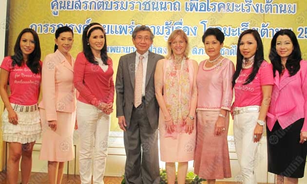 รศ.นพ.กฤษณ์ และคุณหญิงฟิโนลา จาฏามระ (ที่ 5 และ 4 จากขวา) พ่องานแม่งาน พร้อมหน้าคณะทูตกิตติมศักดิ์ ร่วมรณรงค์มะเร็งเต้านม.
