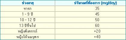วิตามินซีละลายได้ดีในน้ำ มีคุณสมบัติต่อต้านอนุมูลอิสระ ร่างกายไม่สามารถสังเคราะห์วิตามินซีได้เอง แต่ได้จากผักและผลไม้ คนเราจำเป็นต้องได้รับวิตามินซีจากอาหาร ผักและผลไม้ที่กินกันทุกวัน ซึ่งอาหารที่คนไทยกินส่วนใหญ่จะให้ปริมาณวิตามินซีที่เพียงพอต่อความต้องการของร่างกายในแต่ละวันอยู่แล้ว จึงไม่ค่อยได้พบผู้ที่ขาดวิตามินซี ยกเว้นผู้ที่ไม่ได้กินผักและผลไม้เป็นเวลานานๆ ในแต่ละวันร่างกายของคนเราได้รับปริมาณวิตามินซีจากอาหารในปริมาณที่เพียงพอ ต่อความต้องการของร่างกายแล้ว จากการสำรวจในประเทศสหรัฐอเมริกา พบว่า ชาวอเมริกันส่วนใหญ่ได้รับวิตามินซีจากอาหารมากเกินความต้องการในแต่ละวันอยู่แล้ว ดังนั้น ถ้ามาเปรียบเทียบกับอาหารของชาวไทยที่อุดมไปด้วยผัก และผลไม้นานาชนิด จึงเชื่อว่าคนไทยน่าจะได้รับวิตามินซีจากอาหารในชีวิตประจำวันที่เพียงพอต่อความต้องการของร่างกายแล้ว