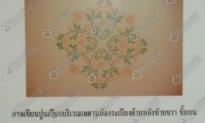 ซุ้มเหนือประตูตกแต่งด้วยงานศิลปะปูนปั้นลวดลายของดอกไม้ ใบไม้