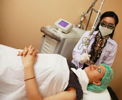 - Carbon dioxide LASER ให้ความยาวคลื่นที่ 10600 nm (nm คือ นาโนเมตร 1 nm = 1x10 -9 หรือเท่ากับ 1/1,000,000,000 เมตร) พลังงานจะถูกดูดซับโดยน้ำ ซึ่งเป็นองค์ประกอบหลักของเนื้อเยื่อทุกชนิด ดังนั้นจึงทำลายเซลล์ทั้งหมดที่สัมผัสกับแสง ปกติเราใช้กำจัดปัญหาที่เกิดในผิวชั้นตื้น เช่น ใช้ยิงไฝ ขี้แมลงวัน ติ่งเนื้อที่งอกเกินออกมา หรือใช้กรอผิวได้ แต่ไม่นิยมใช้กับปัญหาที่อยู่ในผิวชั้นลึกๆ เพราะผิวด้านบนจะเกิดแผลด้วย