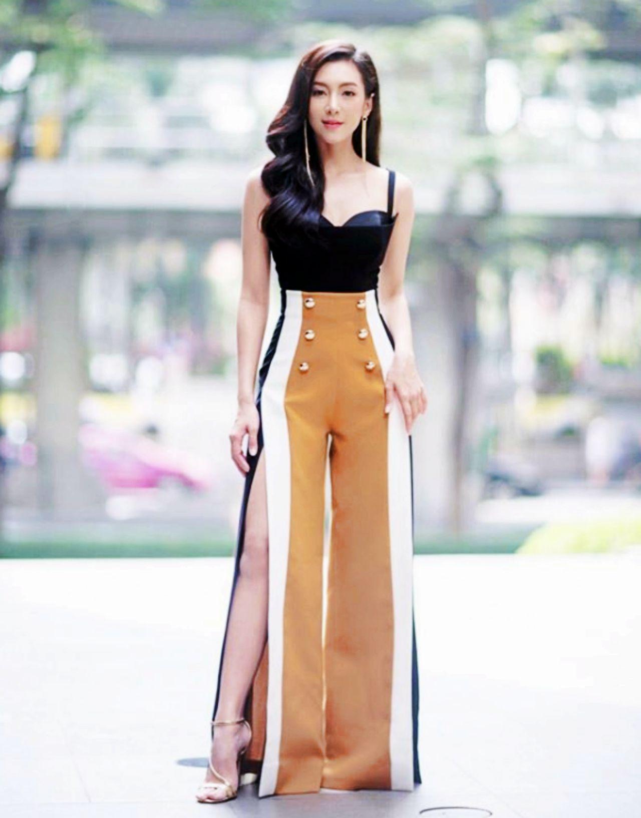 อย่างบูตยาวมันใส่ไม่ได้ไงคะ พอไปต่างประเทศเรามีโอกาสได้ใส่ ก็เลยเซตใหญ่เลย ชุดใหญ่ไฟกะพริบเอ็นจอยมากในการที่จะมิกซ์ของที่เรามี เพราะว่าบางทีมันซื้อไว้ 5-6 เดือนยังไม่ได้ใส่เลย จะให้จัดเต็มไปกองละคร แหม! ก็ไม่ใช่ ก็เลยใช้โอกาสตอนเที่ยวนี่แหละค่ะ ใส่เต็มที่เลย (ยิ้ม)
