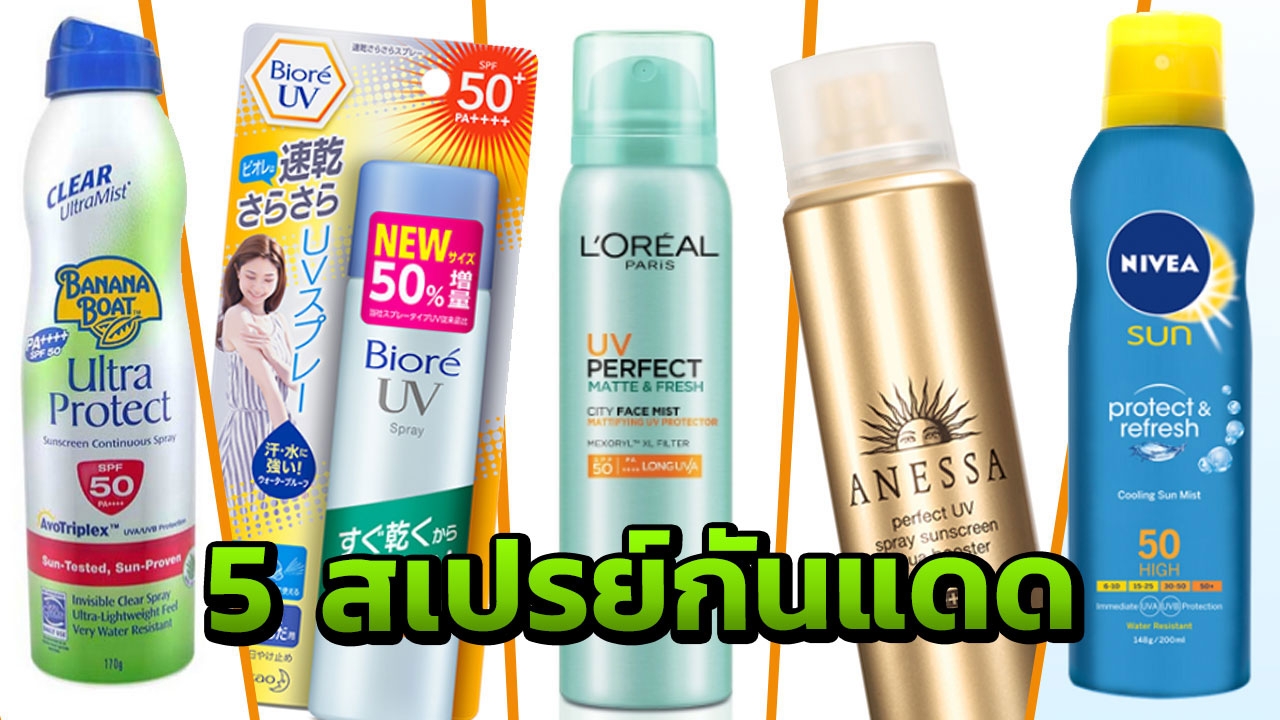 แดดเมืองไทยไม่แพ้ชาติใดในโลก รู้แบบนี้แล้วสาวๆ ก็ต้องป้องกันให้ดี หนึ่งในวิธีนั้นก็คือการทากันแดด แต่หลายคนไม่ชอบทาเพราะมีความเหนียวเหนอะหนะ เราจึงขอแนะนำเป็นตัวสเปรย์กันดีด ฉีดไปเลยรัวๆ ไม่เหนียวแถมยังเย็นๆ อีกด้วย ไทยรัฐออนไลน์ ขอแนะนำ 5 สเปรย์กันแดดที่คุณควรมี...