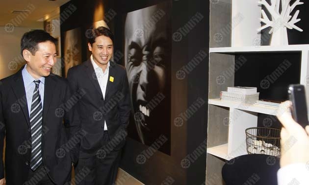 พรวุฒิ สารสิน ชื่นชมสถาบันองค์ความรู้แห่งเอเชีย โดยมี พิเชษฐ ฤกษ์ปรีชา จาก AKI คอยแนะนำ.