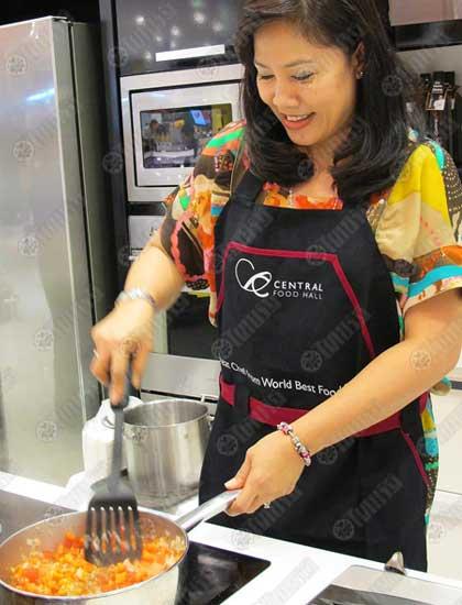 ความรู้เหล่านี้ได้รับการบอกเล่าจาก คุณหล่อน-ภัทรพร เพ็ญประพัฒน์ เจ้าแม่กระเช้าปีใหม่ของเซ็นทรัล ฟู้ด รีเทล ซึ่งช่วยสาธยายให้ฟังนั่นเอง และไม่ใช่ว่าคุณหล่อนเธอจะถนัดแต่เรื่องกระเช้าปีใหม่นะคะ เธอยังถนัดชิมอีกด้วย เพราะความที่เป็นบายเออร์ (จัดซื้อ) ด้านอาหารมาก่อน จึงต้องชิมตลอดเพื่อเลือกสั่งสินค้าเข้าห้างฯได้ถูก ยิ่งบริษัทนำเข้าสินค้าจากทั่วโลกเยอะมาก คุณหล่อนจึงต้องพยายามเรียนรู้ในเรื่องการทำอาหารไปด้วย เพื่อจะได้รู้ว่าเครื่องปรุงแต่ละชนิด สามารถนำมาปรุงอาหารอะไรได้บ้าง