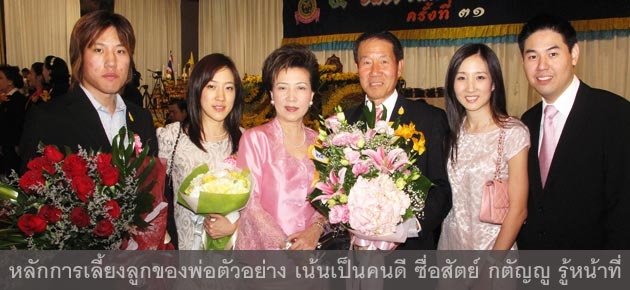 ขณะที่ "ชาญณรงค์ สัจจเทพ" เจ้าของธุรกิจฮันนีเวลล์ รีสอร์ต จังหวัดกาญจนบุรี เผยถึงเคล็ดลับการเลี้ยงลูกทั้ง 5 คน ว่าจะเลี้ยงลูกด้วยเหตุผลเป็น หลัก โดยได้น้อมนำหลักคิดเรื่องปรัชญาเศรษฐกิจพอเพียงของพระบาทสมเด็จพระเจ้าอยู่หัว มาเป็นแนวทางดำเนินชีวิต แม้ครอบครัวเราจะพอมีฐานะ แต่ ก็ไม่เคยสนับสนุนให้ลูกๆฟุ้งเฟ้อ หรือใช้จ่ายเงินเกินตัว ครอบครัวเราจะยึดหลักเดินทางสายกลาง และมีชีวิตพอเพียง.