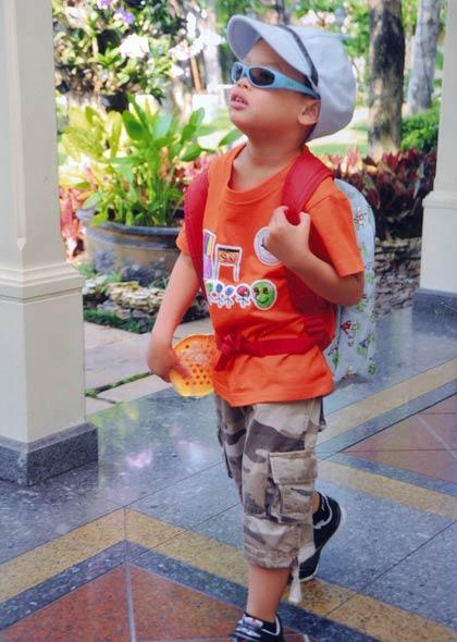 ...เรื่องที่ฉันห่วงเป็นพิเศษ คงเป็นเรื่องการปก ครองบริวาร สอนเขาว่าเรื่อง นี้ ถ้าปกครองไม่ดี แล้วบริวารเอาชื่อเราไปอ้าง แล้วทำสิ่งที่ไม่ดี จะเสีย หายมาก ก็บอกเขาว่า บางครั้งมีอะไรก็ต้องตักเตือน จะปล่อยให้บริวารทำตามใจชอบไม่ได้ ไม่ว่าจะเป็นคนโปรดแค่ไหนก็ต้องระวังองค์ เล็กเขาโตใน อเมริกา เขาเคยอยู่คนเดียว ไม่เคยมีบริวาร พอมามีตอนแรกเขาก็สับสนเหมือนกัน แต่ตอนนี้ดูจะเข้าที่แล้ว ก็ดูเขาปรับตัวได้เร็ว ดูไม่มีปัญหาอะไร เขาชอบออกแบบพวกโบรชัวร์ โปสเตอร์ใช้คอมพิวเตอร์ ทำ ก็เป็นศิลปินอีกแบบหนึ่ง"