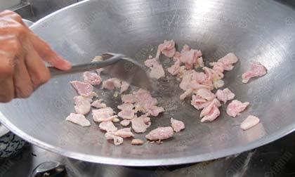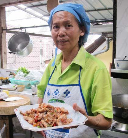 สำหรับ อาหารปุ้นเต๋ที่อยากแนะนำวันนี้ คือ หมูผัดเคยเค็ม ซึ่งใช้เนื้อหมูตรงส่วนที่เรียกว่า เอี่ยมต้อ อยู่ใต้อกตรงราวนม เนื้อส่วนนี้จะนุ่มและติดมันนิดๆ หมูตัวหนึ่งจะมี "เอี่ยมต้อ" แค่ชิ้นเล็กๆเท่านั้น คุณแอ๋วนำมาผัดกับ "เคย" ซึ่งเป็นสัตว์ทะเลตัวเล็กจิ๋วคล้ายกุ้ง มีมากแถบชายทะเลภาคใต้ นิยมนำมาหมักทำเป็นกะปิ มีกลิ่นหอมไม่คาว แต่ "เคย" ที่คุณแอ๋วนำมาใช้ จะหมักสดๆไม่ตากแห้งจนเป็นกะปิ