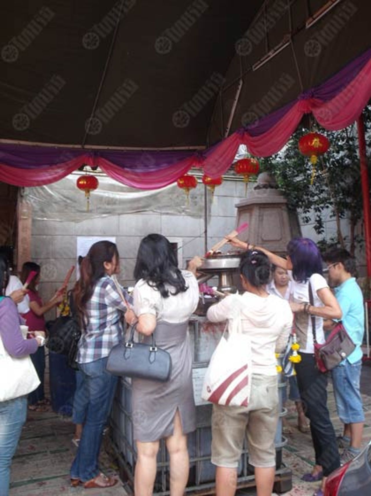 สถานที่ยอดฮิตสำหรับช่วงทำบุญปีใหม่จีนอย่างวัดเล่งเน่ยยี่ หรือวัดมังกรกมลาวาส เลยรับบทหนัก อย่างวันนี้สาวๆ ที่มากัน ส่วนใหญ่ก็มาเพื่อแก้ปีชง และขอพรจากเทพเจ้าไท้ส่่วยเอี้ย ซึ่งหลักๆ จะขอในเรื่องสุขภาพ การเงิน และความรักมาตามลำดับ