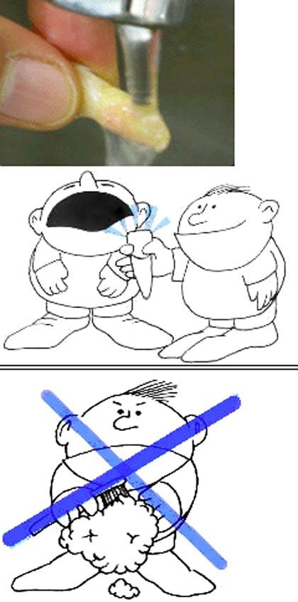 3. ล้างด้วยน้ำสะอาดที่ไหลเบาๆ เพื่อเอาเศษสิ่งสกปรกออกจากฟัน ห้ามขัดถูฟันหรือใช้น้ำยาเคมี เช่น สบู่ ผงซักฟอก น้ำยาล้างจานทำความสะอาดฟันเด็ดขาด