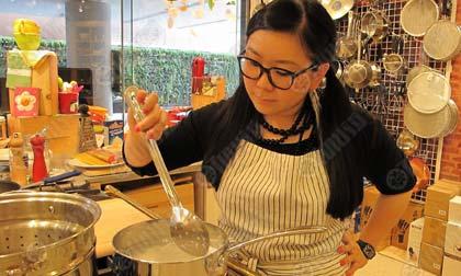 คุณบี ลูกสาวคนกลางของเถ้าแก่ร้านทองฮั่วเซ่งเฮง จัดเป็นลูกไม้ที่หล่นใต้ต้น เพราะเป็นคนที่ชอบทำอาหารเช่นเดียวกับคุณพ่อ คุณบีเล่าว่า เมื่อตอนที่ลูกๆไปเรียนเมืองนอก ทุกครั้งที่คุณพ่อไปเยี่ยม จะต้องทำ อาหารแพ็กใส่ตู้เย็นไว้ให้ลูกๆทาน มีทั้งไข่พะโล้ เนื้อตุ๋น ฯลฯ แต่โดยส่วนตัวคุณบีบอกว่าจะชอบทำขนม มากกว่า โดยค้นพบตัวเองว่า ชำนาญในหลักพื้นฐานของการทำขนมฝรั่งเศส ซึ่งทำให้มีความรู้เกี่ยวกับอุปกรณ์ ที่เกี่ยวข้องด้วย จึงทำให้คุณบีลาออกจากงานประจำที่บริษัทเดนท์สุ (ประเทศไทย) มาเปิดร้าน Pantry Magic นำเข้าเครื่องครัว รวมทั้งอุปกรณ์ทำอาหารและ ขนม คุณภาพดีหลากหลายแบรนด์จากทั่วโลก ที่ EIGHT THONGLOR อยู่ในขณะนี้ และวันนี้เธอเลือกเมนูโปรดของน้องสาวมานำเสนอ