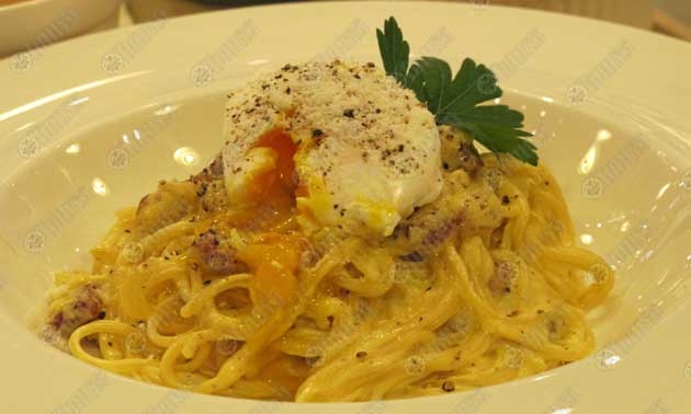 สปาเก็ตตี้คาร์โบนารา จัดเป็นเมนูสุดเลิฟของผู้ที่ชื่นชอบสปาเก็ตตี้ทั้งหลาย ด้วยรสชาติที่เข้มข้นถึงนมถึงเนย จึงถูกใจผู้ที่ชอบทานอาหารฝรั่ง โดยเฉพาะสูตรที่ได้จาก คุณบี-อนงค์รัตน์ พสวงศ์ ไม่เพียงแต่ถึงนมเนย แต่ยังถึงไข่อีกด้วย
