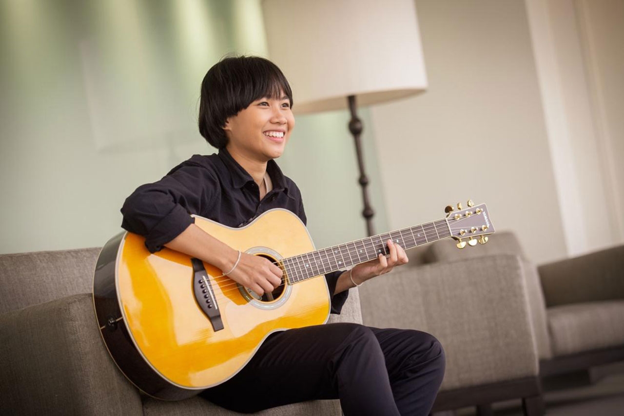 “เริ่มฝึกเล่นกีตาร์จริงจังครั้งแรกตอนอายุ 15 พ่อเป็นสอนให้ พ่อกับพี่ชายเป็นนักดนตรี เราเองก็อยากเล่นดนตรี ก็ฝึกฝนตัวเองมาจนกระทั่งเล่นกีตาร์ไฟฟ้า แล้วก็ทำวง จริงๆ ดนตรีเปลี่ยนเราค่อนข้างมาก ชีวิตครอบครัวเราเปลี่ยนแปลงไปในทางที่ดีก็เพราะมีดนตรี เราสามารถหารายได้ได้จากการเล่นดนตรี ส่วนเรื่องภายใน หนูมองว่าดนตรีก็เปลี่ยนเราได้มาก ทำให้เราไม่เป็นคนฟุ้งซ่าน ดนตรีเป็นเครื่องมือบำบัดความเครียดจากเรื่องเรียน เรื่องชีวิตที่ดีมาก การเล่นดนตรีทำให้เรามีสมาธิมากขึ้น มีความอดทน และทำเรื่องอื่นในชีวิตได้ดี จริงๆ ผู้หญิงกับการเล่นดนตรีก็ไปกันได้ เมื่อก่อนคนอาจจะมองว่าไม่ค่อยเข้ากับผู้หญิง คงเพราะสรีระที่เล็กกว่าผู้ชาย แต่จริงๆ แล้วถ้าเราชอบ เราอยากเล่น มันไม่มีอะไรมาขวางเราได้เลย เพศไม่ใช่ข้อจำกัด ทุกอย่างอยู่ที่ใจล้วนๆ”