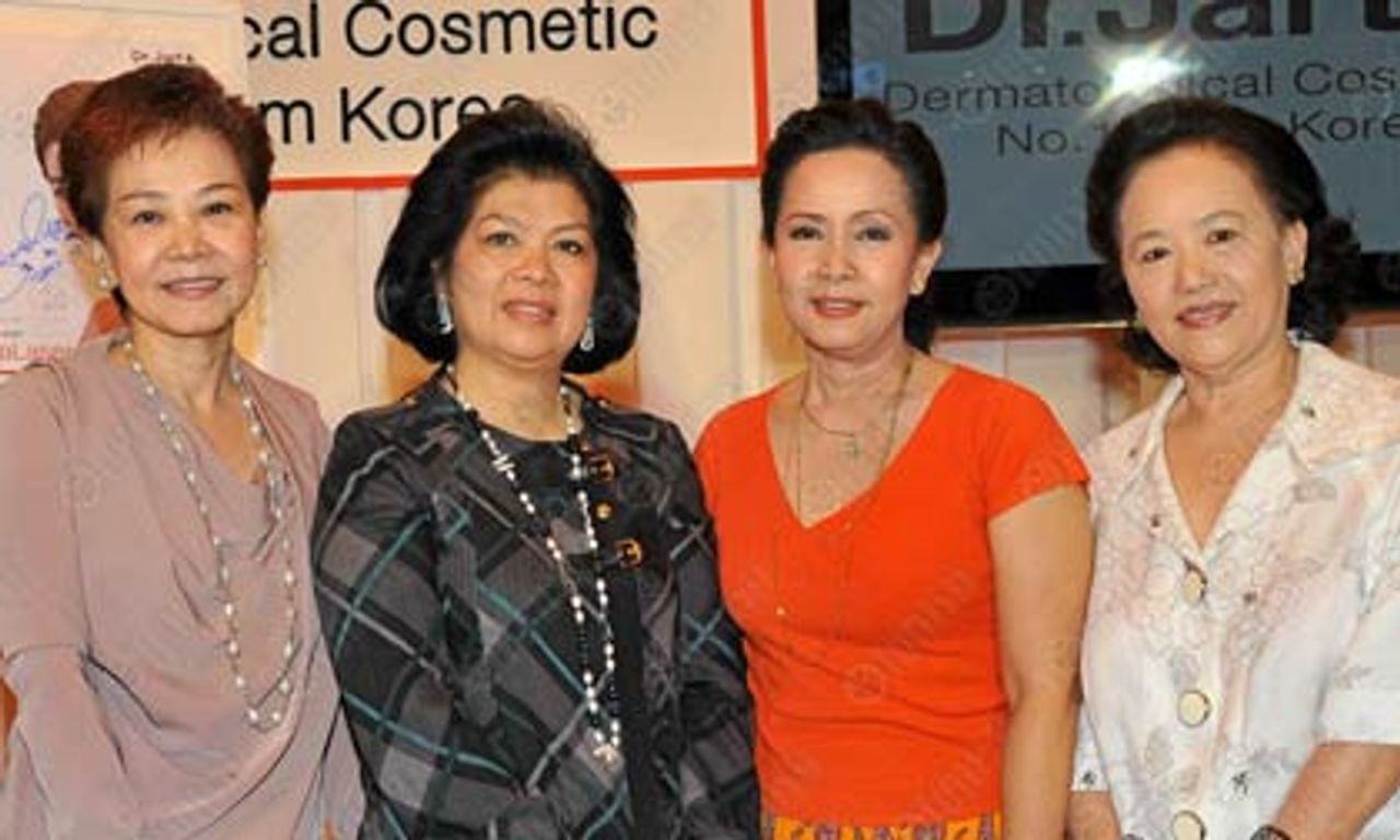 หนิง-ปณิตา พัฒนาหิรัญ (ที่ 2 จากซ้าย) และอลิสรา ปูริซีม่า (ขวาสุด) ขอลายเซ็นจากพรีเซ็นเตอร์สาวชาวเกาหลี "ปาร์ค ฮัน บยอล".