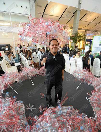 เพื่อให้เห็นภาพของใช้พลาสติกให้คุ้มค่า ภายในงานจึงมีงานศิลปะที่สร้างสรรค์จากขวดพลาสติกจากศิลปินและ คนดัง อาทิ ชลิต นาคพะวัน ซึ่งได้ทำร่ม ในผลงานว่า “วงกลมที่สวยงาม” พร้อมบอกว่า การช่วยกันลดโลกร้อนเป็นเรื่องที่สำคัญที่เราต้องช่วยกัน ใส่ความจริงใจต่อสิ่งที่ทำ เรารักตัวเองก็ต้องรักโลกด้วย ด้าน รวิชญ์ เทิดวงศ์ ได้สร้างผลงาน “โมบายสวนสัตว์” โดยมีแนวคิดว่า เพราะมีลูก 2 คนจึงอยากทำอะไรที่สอดคล้องกับความสนใจของเด็ก ทำให้เด็กเพลิดเพลิน ส่วนการลดโลกร้อนในแบบของตนเอง ทำได้ง่ายๆ คือการประหยัดพลังงาน เช่น การปิดแอร์, ปิดไฟเครื่องใช้ไฟฟ้า ซึ่งเป็นการช่วยโลก และยังช่วยประหยัดเงินด้วย