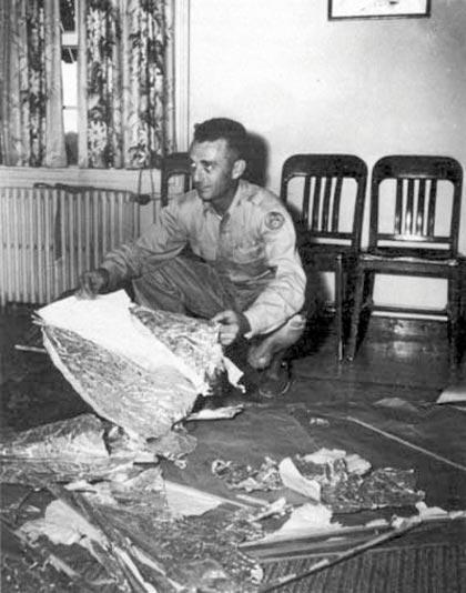 อันที่จริง เริ่มมีข่าวลือหนาหูออกมาตั้งแต่ปลายเดือนมิถุนายน ต่อต้นเดือนกรกฎาคม 1947 แล้วว่า มีคนเห็นอะไรบางอย่างแปลกประหลาดที่ทุ่งนาทางตอนเหนือของ เมืองรอสเวลล์ในรัฐนิวเม็กซิโกของสหรัฐอเมริกา แต่ก็ยังไม่มีอะไรแน่ชัดจนกระทั่งหนังสือพิมพ์รอสเวลล์ เดลี่ เรคคอร์ด ได้ตีพิมพ์ข่าวที่สะท้านลั่นโลกในวันที่ 8 กรกฎาคม 1947 ว่า มีคนพบ “ซาก” ของวัตถุบางอย่างที่อาจจะเป็นยานบินลึกลับในทุ่งนา แล้วทีนี้ก็ลือสะพัดกันมากขึ้นว่า ไม่ใช่เฉพาะยูเอฟโอร่วงหรอก...แต่มีเอเลี่ยนติดคาอยู่ในซาก จานบินด้วย บ้างก็บอกว่าเพื่อนตัวจิ๋วของเราบาดเจ็บสาหัส แต่ส่วนใหญ่จะบอกว่าตายแล้วแหงแก๋ แต่ที่แน่ๆ ทางการได้มา “เก็บ” ไปหมด แล้ว ทั้งซากยานและเอเลี่ยนที่ว่า ทำให้ไม่เหลืออะไรให้เห็นอีกเลย